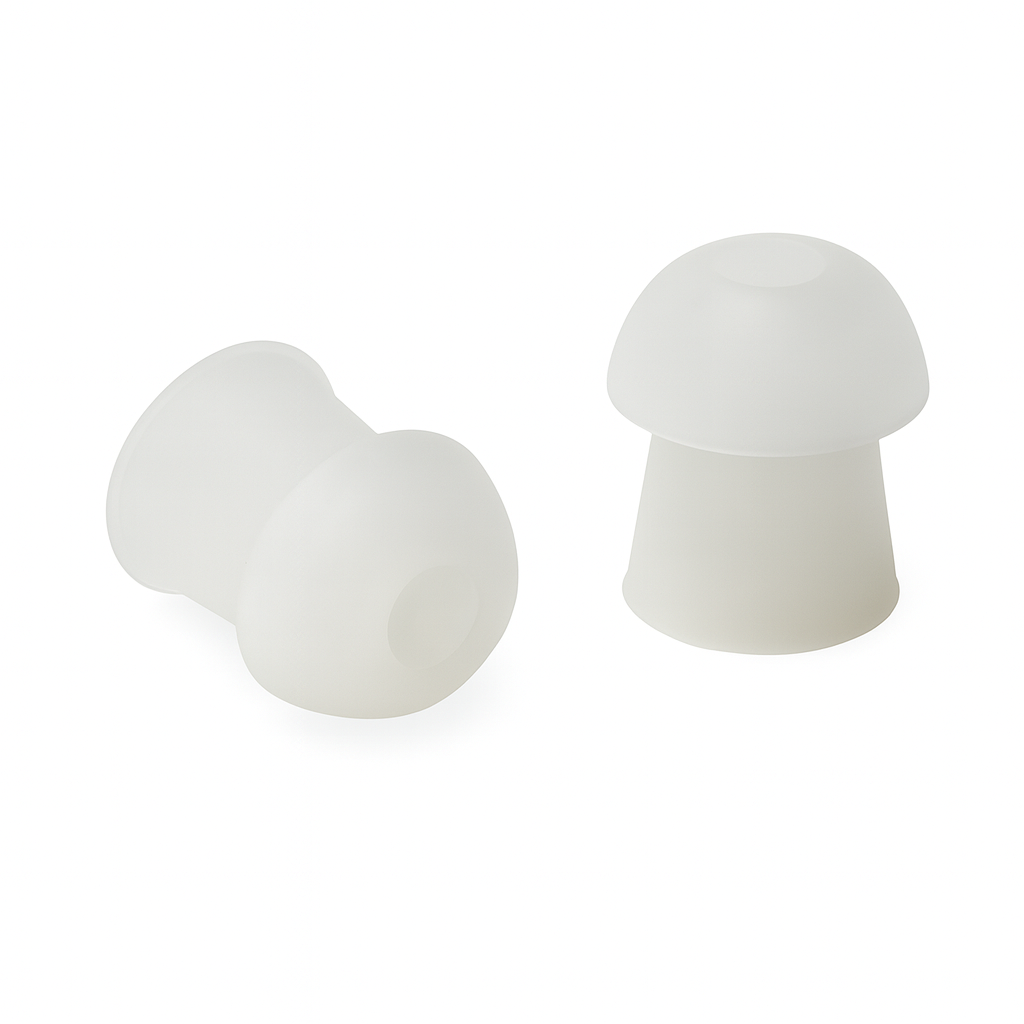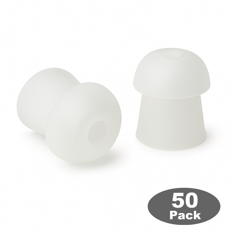 Mushroom Style Communication ear tip. White, Small size - Bag of 50 Mushroom shaped, ear tips for all acoustic tube surveillance accessories. Clear, Small size. Pack of 50 smaller tapered ear tips. Our replacement for the Motorola OEM part numbers RLN6282, RLN6282A.