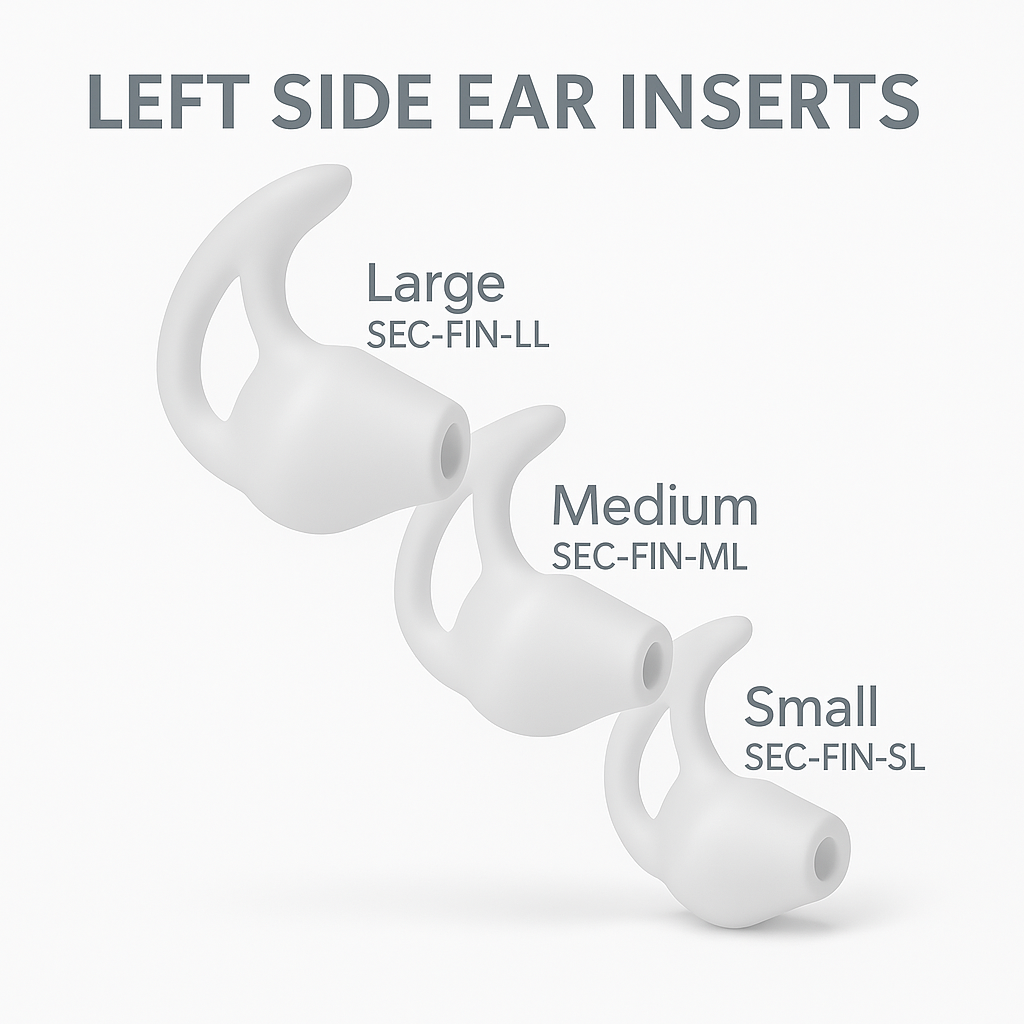 - Available for left or right ear and in 3 sizes: Small, Medium and Large